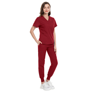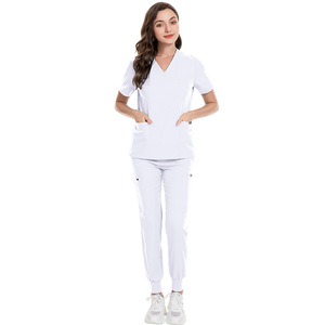 クロスボーダー新型婦人服半袖vネック看護服作業服制服看護師服セット高品質手洗い服
