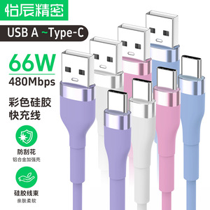 66WシリコンTYPE-Cデータケーブルは、Xiaomi、Apple、Samsung、Huaweiの携帯電話に適した急速充電ケーブル、USB充電ケーブルです。