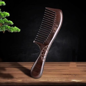 黒檀の木の櫛の長い柄の歯の両面の彫刻の木の櫛の丸みを帯びた歯の頭