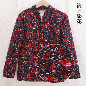 秋冬のお母さんの服の女性のキャメルケースの両面の綿入れと暖かい綿入れの服の中高年の婦人服のスタンドカラーのコート