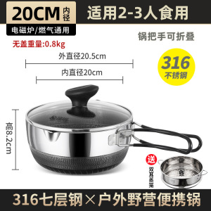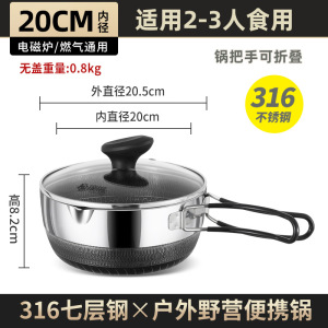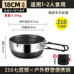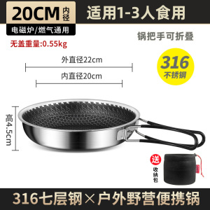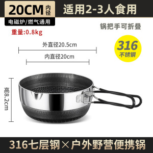 戸外登山316ステンレス折り畳み鍋キャンプ携帯フライパン鍋家庭用ピクニック鍋2点セット