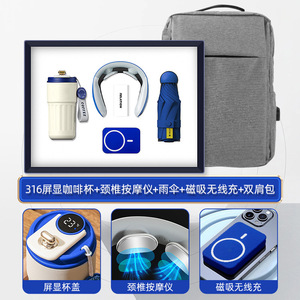 316 スクリーンディスプレイコーヒーカップ + 頸椎充電モデル + 傘 + 磁気ワイヤレス充電 + バックパック - グレー