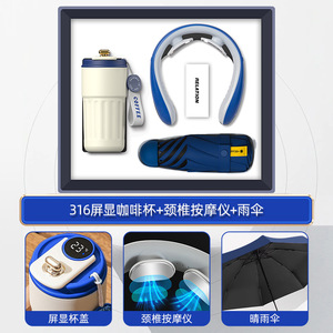 316 スクリーン表示コーヒーカップ + 頚椎充電モデル + 傘 + バックパック - ブラック