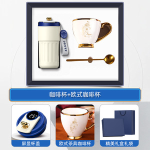 316 スクリーン表示コーヒーカップ + 頚椎メーター充電モデル + 傘 + バックパック - ブルー