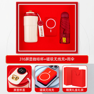 316 スクリーンディスプレイコーヒーカップ + 首椎器具充電モデル + 傘 + 磁気ワイヤレス充電 + バックパック - レッド