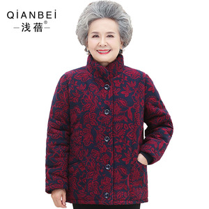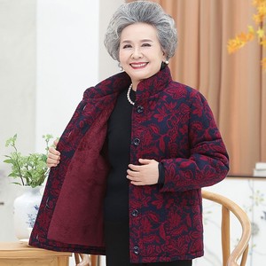 70歳の高齢者の女性のお母さんの冬服のコートは厚い綿服のおばあさんの綿入れの女性服を着ます。