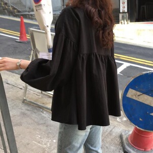 早秋の春と秋の甘さの灯籠の袖のシャツの韓国版の薄い長袖の子供のシャツの女性はゆったりとしていて腹の上着を隠します。