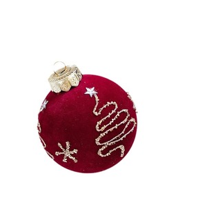 跨境新品8cm盒装酒红色奶白色植绒球圣诞树装饰球橱窗装饰挂件