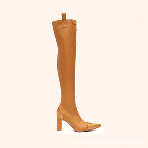 新商品のSMFK十字の花の黒いゴムの高いブーツの牛革のハイヒールの長いブーツの太さと先の先の膝の靴の2023冬の女性