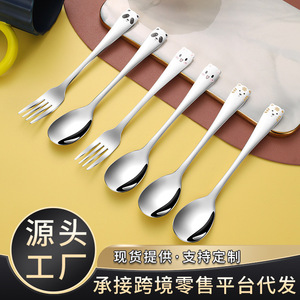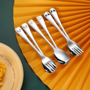 316 ステンレス鋼ロングハンドルデザートスプーンとフォーククリエイティブ漫画食べる小さなスプーンとフォーククロスボーダー子供用食器セット