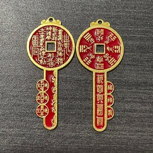 古風銭復古合金工芸品朱砂紅は古銭山鬼に似せてお金をかけて中国式の八卦のお金のペンダントを飾ります。