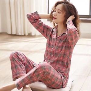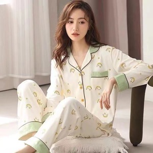 パジャマ女性夏100% 高級純綿カジュアル2点セット春秋韓国版甘い長袖薄い家庭服
