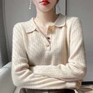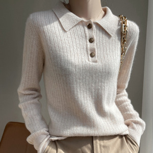 Polo襟のカーディガンの女性の気質は襟をひっくり返してデザイン感があります。