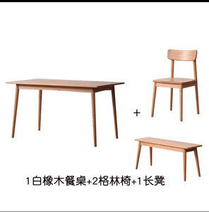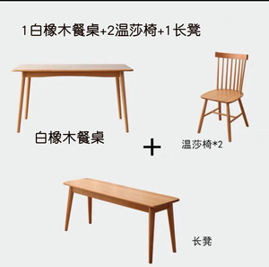 ホワイトオークのテーブル + 2ウィンザーの椅子 + 1ベンチ