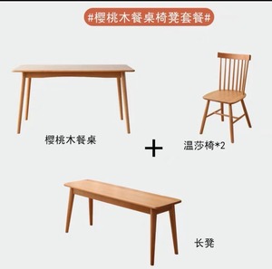 さくらんぼ木テーブル + 2ウィンザー椅子 + 1ベンチ