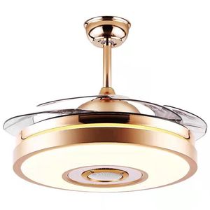 现代简约吊扇灯卧室餐厅一体风扇灯跨境出口蓝牙音乐变频爆款风扇
