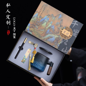 江山礼箱山海杯黒五点セット (カップ + usb + 江山ブックマーク + ペン + 江山ノート)
