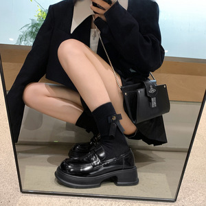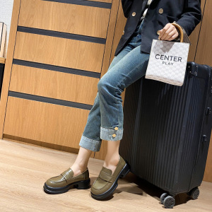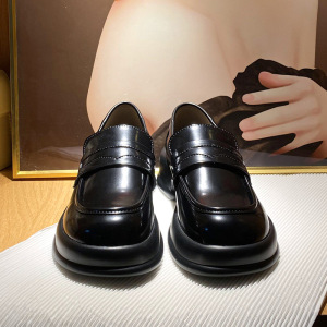551 恵東イーシンダボストンカレッジ〜レトロラウンドトゥ高め厚底ローファーレディーススモールレザーシューズ