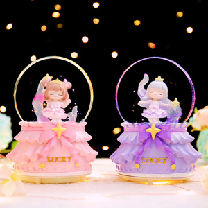 新商品の女の子の魔カードの少女の雪の水晶のボールの寝室の発光の光る装飾品の置物の代行