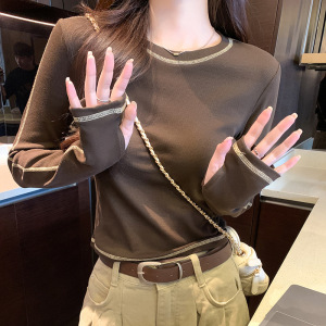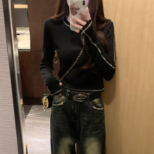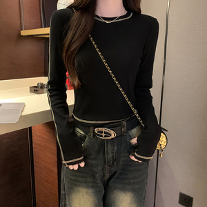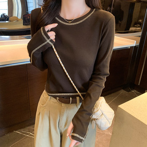 個性的な外縫いデザインのニッチなインナーウェア、春先秋の新作、リブ編み長袖Tシャツ、レディーストップス