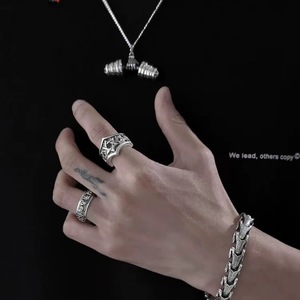 芸尚s925泰銀六芒星象眼指輪男性ファッションヒップホップの流れの中で指輪の幾何学の潮人の復古を指します。