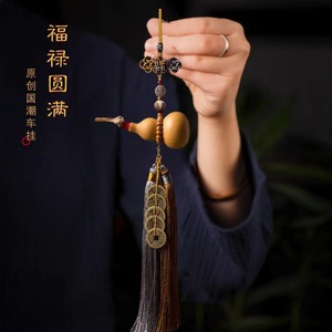 五帝銅銭ストラップ天然瓢箪国風自動車ストラップ車内ストラップ車載バックミラーストラップ創作品
