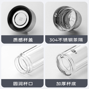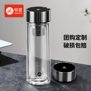 明霞二層高ホウ素シリコングラス茶水分離ティーカップシンプルビジネス車載水カップ卸売りカスタマイズ