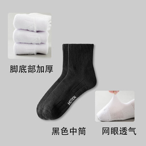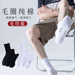 秋冬男性タオル底綿靴下男性白黒毛輪中筒靴下厚い保温高ゴム運動ストッキング