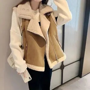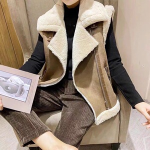 外に重ねて小馬甲を着ている女性は、新しい洋気とベルベットを着て、子羊の毛を厚くして一体的に湿っている