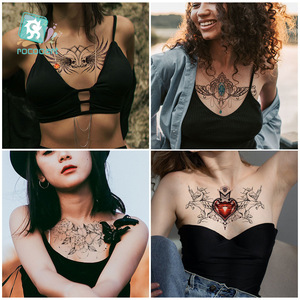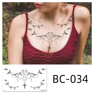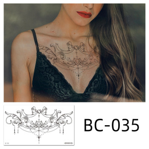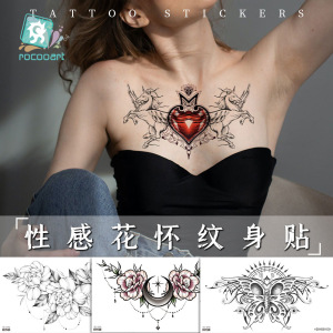 2022新型国境を越えたソース防水タトゥーシールシンプルな白黒花胸骨貼り個性タトゥー卸売り