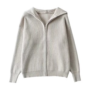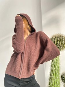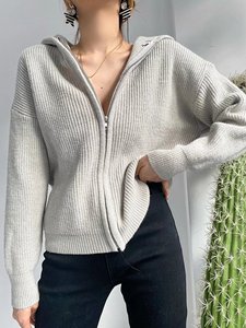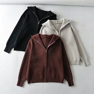 秋冬スタイルの帽子付き長袖純色ニットカーディガン