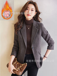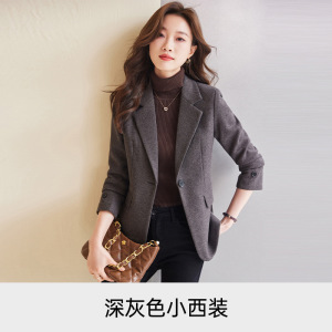 濃い灰色の毛は綿の小さいスーツのコートをプラスします。