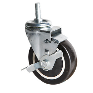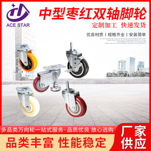 栗色の中型キャスター、白いPP製の花柄入り単軸工業用ホイール、手押し車、機械設備、棚、二軸移動ホイール