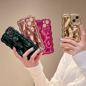 個性的な電気メッキ水波模様 iPhone16pro max用スマホケース Apple17新モデル14/15 高級感