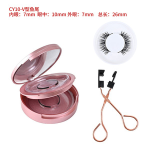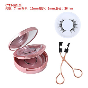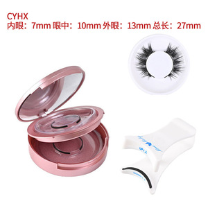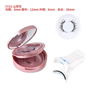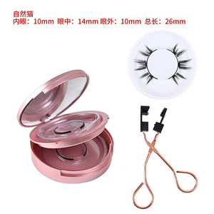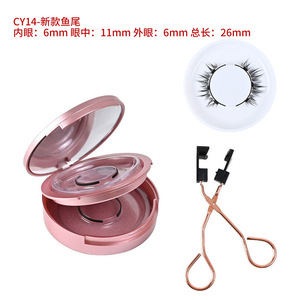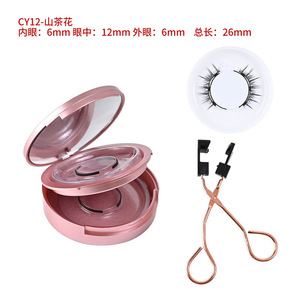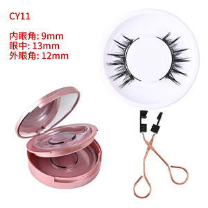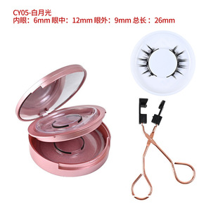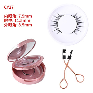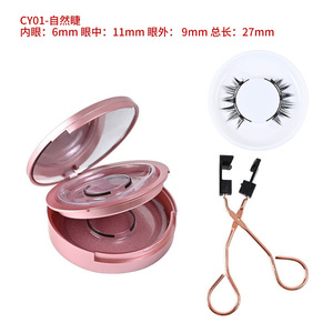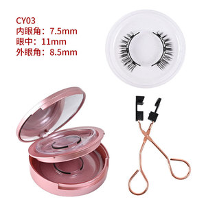 CY01 ナチュラルアイラッシュ 2 ペア + ラウンドボックス + ゴールドクリップ