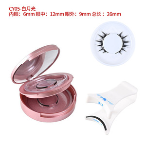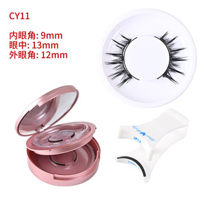 CY01 ナチュラルまつげ 2 ペア + ラウンドボックス + ホワイトクリップ