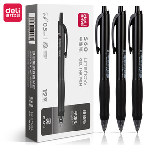 得力至順滑s60押し中性ペン0.5ブラシ問題ペン速乾黒ペン学生用試験水筆押し式