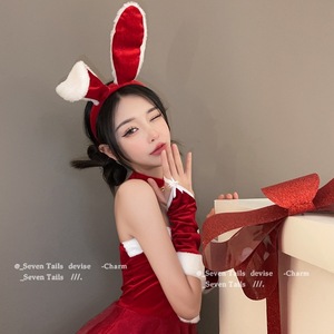 圣诞节长兔耳朵发箍新年红色毛绒兔耳朵头箍女仆兔女郎网红发饰女