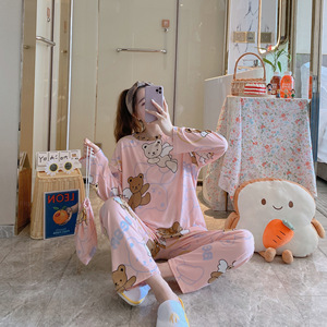 パジャマ女春秋冬パジャマ女夏韓版外着女性パジャマ長袖長ズボン家庭服セットメーカー