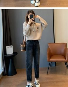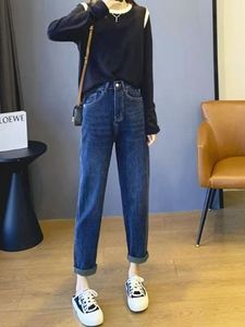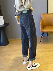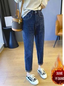 梨の形の体つきのハーレムのジーパンの女性の秋冬の太っているmmの大きいサイズの新型のベルベットの高い腰はやせている大根のお父さんのズボンの潮を現します。
