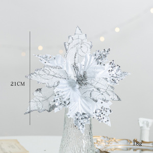 金色21cmシミュレーションスパンコールクリスマス花ベルベットクリスマスツリー装飾装飾品ペンダント赤いdiy装飾花