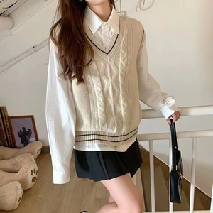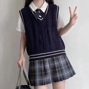 JK風Vネック麻花編みニットベスト レディース新作 秋冬新作セーター 着痩せ重ね着ノースリーブベスト