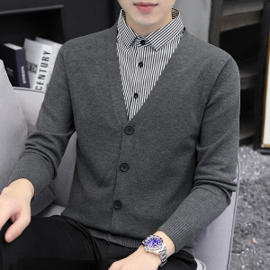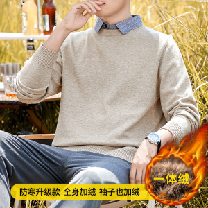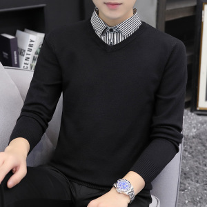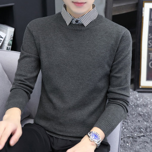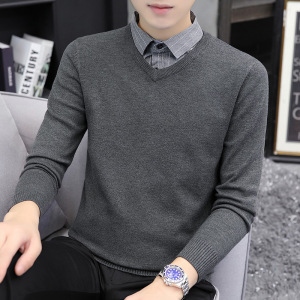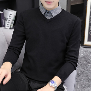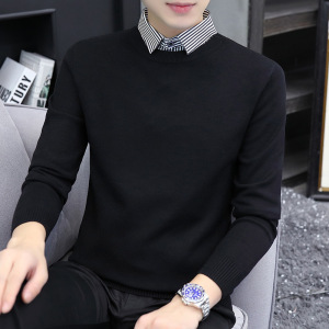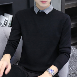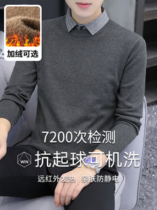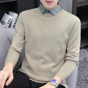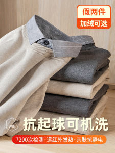 【老钱風】リラックスした高級感 ヘンリーカラー フェイクツーピースセーター カジュアルで万能なニットウェア メンズ/在庫あり