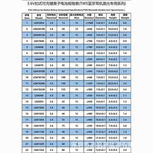 2000サイクルbluetoothイヤホン電池1045ボタン電池3.6v 46mahボタン式5c電池