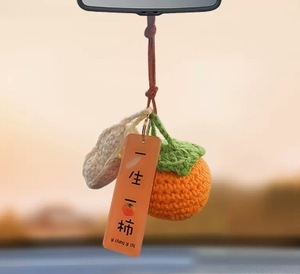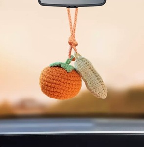 ひまわりの自動車のストラップの手作りの毛糸のかぎ針編みの車は平安の喜びの車内を掛けてかわいい創意の女神の金を飾ります。