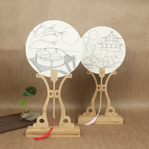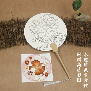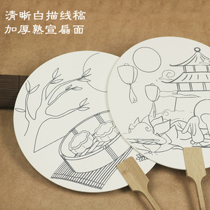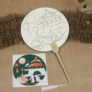 中秋団扇宣紙塗り扇手描き模写扇面diy線稿白描扇暖場活動落書き扇子