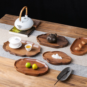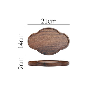 胡桃木トレーレストランのアイデアはシンプルでデザートプレートの高級ホテルの特色です。