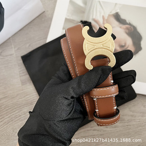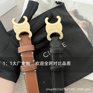 ハイエンドのレトロな銅のボタンの凱旋門の柔らかいベルトの女性はスーツのオーバーのジーパンの本革の細いベルトの韓国版を配合します。