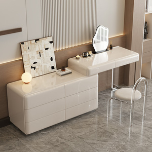 クリーム風の化粧台の闘盤の一体の寝室の現代の簡単なベッドの尾の箱のイタリア式の極めて簡単なコーナー式の化粧台のテーブル