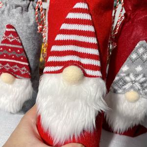 越境 クリスマスワインボトルカバー クリスマスデコレーション クリスマスワインバッグ 北欧風顔なし老人 赤ワイン シャンパン